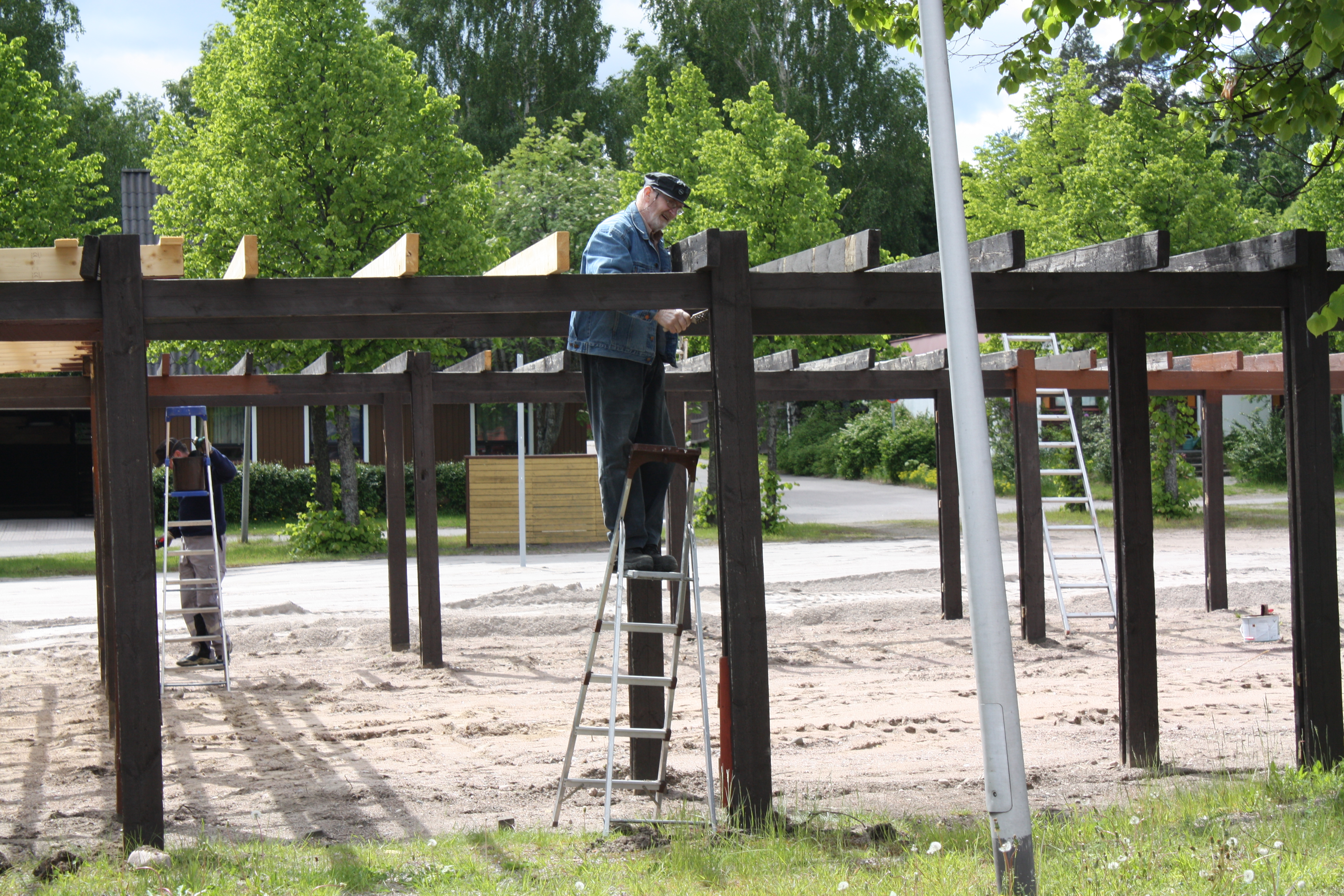 >Iso pergola maalattiin talkoilla Jussilanpihassa