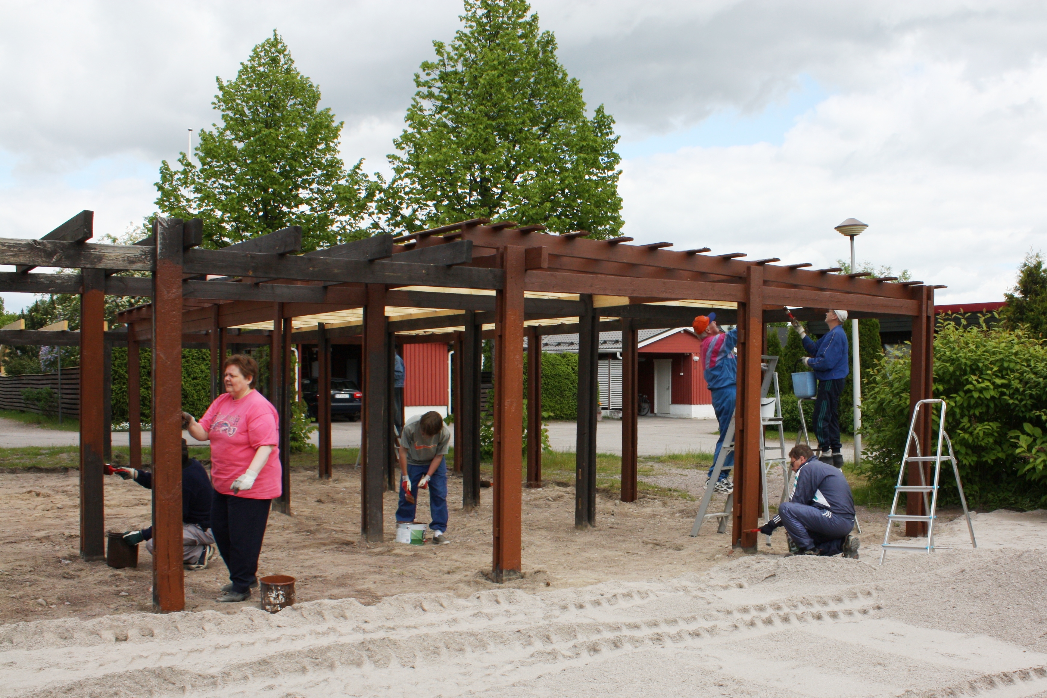 >Iso pergola maalattiin talkoilla Jussilanpihassa