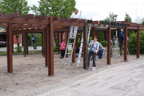 >Iso pergola maalattiin talkoilla Jussilanpihassa