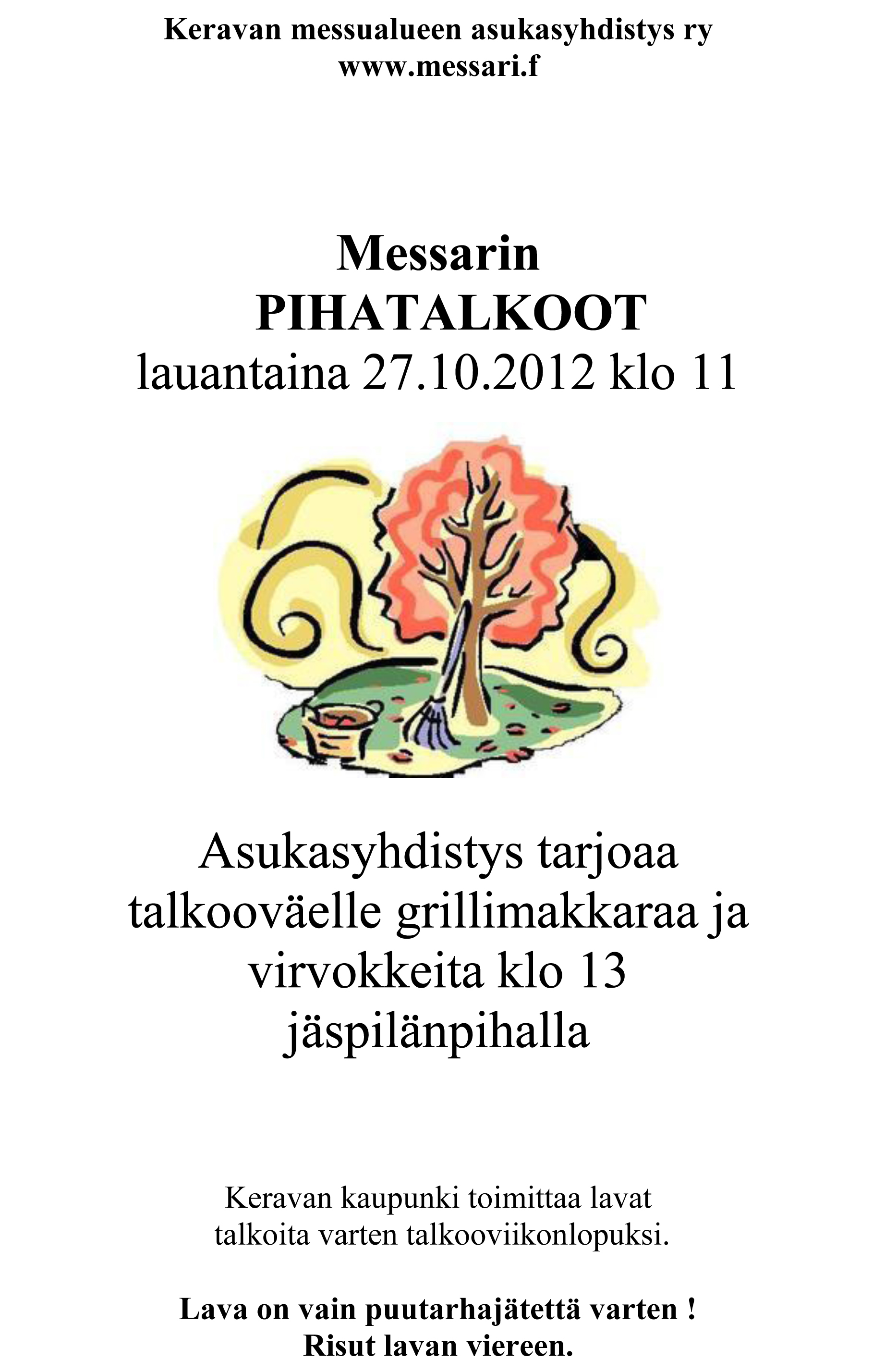 Tarkoitus on kehittää sekä aluettamme teknisesti että yhteisöämme henkisesti, joten toivomme runsaslukuista osallistumista.
