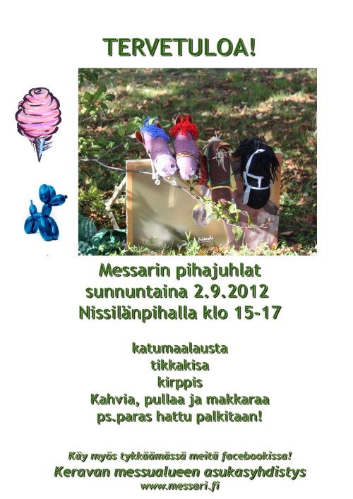 Asukasyhdistys järjestää tivolihenkeen Messarin pihajuhlat sunnuntaina 2.9.2012 Nissilänpihalla klo 15-17 alueen asukkaille.